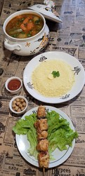 Le Couscous est devenu un des fleurons de chez Oh! Sèvres autrement grâce au savoir faire de notre mère. Ce plat est une spécialité culinaire issue de la cuisine Kabyle d'ailleurs, le plus vieux couscoussier au monde, datant du XIe siècle, a été découvert en Kabylie (région d'Algérie peuplée de Berbères) à base de blé, légumes, épices, huile d'olive et de viandes (rouge ou blanche). Nous l'avons décliné sous différentes sortes afin de satisfaire un maximum de personnes.