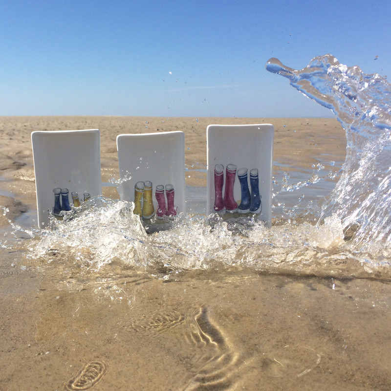 Petite boîte carrée " Papillon". D'une base de 6cm et d'une hauteur de 4 cm, cette boîte peut servir de boîte à dents.  En porcelaine blanche, elle est peinte d'un ton bleuet sur ...